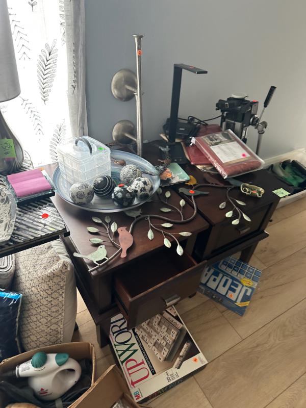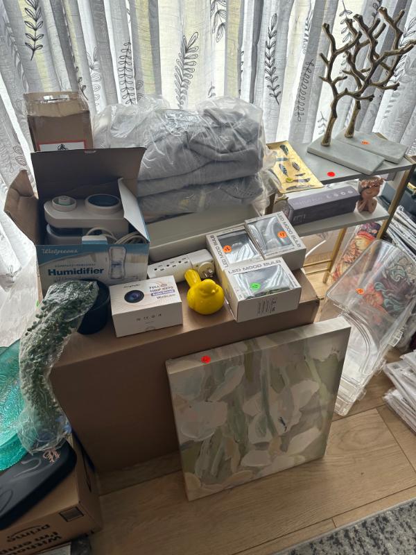 Furniture: bedroom set, costume jewelry, bags/shoes, computer chair, couches, assorted household items, curtains, collectibles/figurines, crib/mattress, lamps, clothes, artwork, baby stuff, and so much more….
